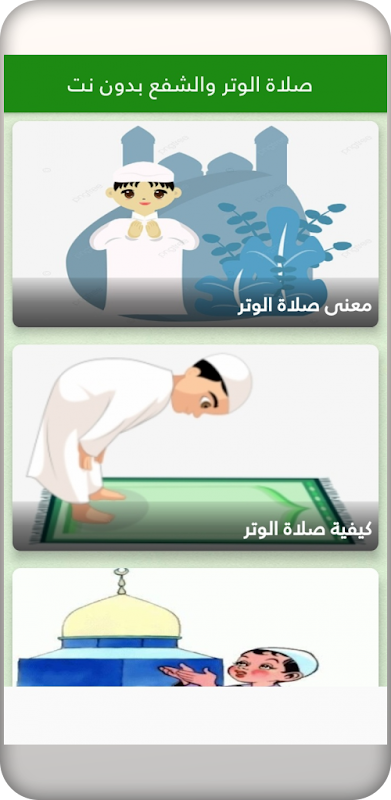 التطبيق يشرح كيفية صلاة الشفع و الوتر