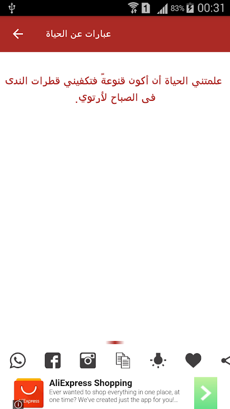 الخصائص والمميزات الموجودة في تطبيق عبارات عن الحياة: