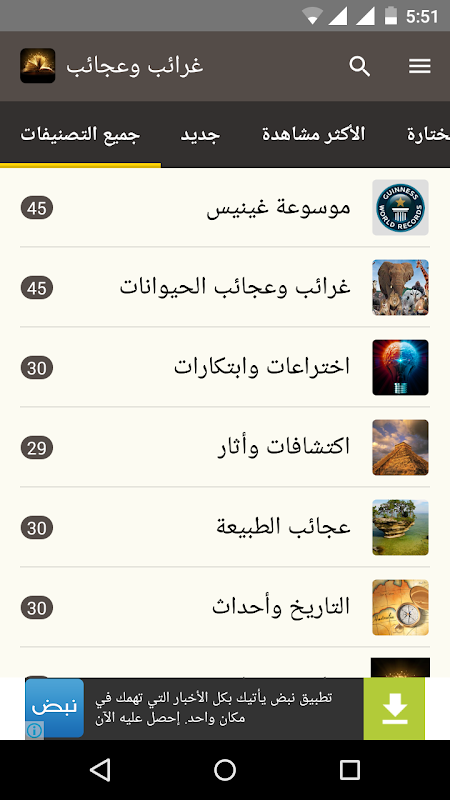 تطبيق غرائب وعجائب لتتعرف على الكثير من الامور الغريبة والعجيبة حول العالم من أحداث واكتشافات خارجة عن المعتاد حيث يضم التطبيق الكثير من المواضيع مثل موسوعة غينس وعجائب الحيوانات وأغرب الاكتشافات والابتكارات واسرار الاثار في العصور القديمة والكثير من موضيع عجائب الطبيعية والاحداث التاريخة الغريبة.