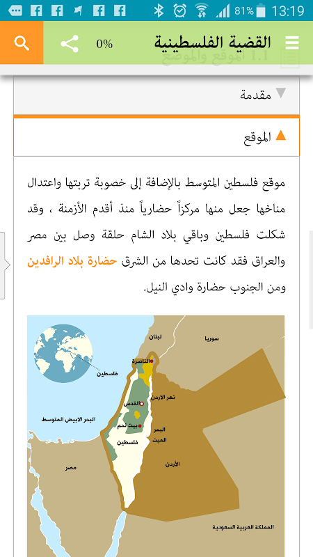 aplicativo lida com o estudo da antiga civilização da Palestina, e a geografia da Palestina histórica