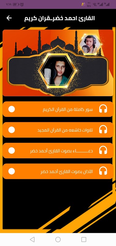 ✅ A interface do programa Ahmed Khedr Full Quran é muito simples, o que permite usar o programa Ahmed Khedr Quran com facilidade e conforto, além de navegar facilmente entre as páginas do aplicativo Alcorão na voz de Ahmed Khedr, Ahmed Khedr Alcorão completo.