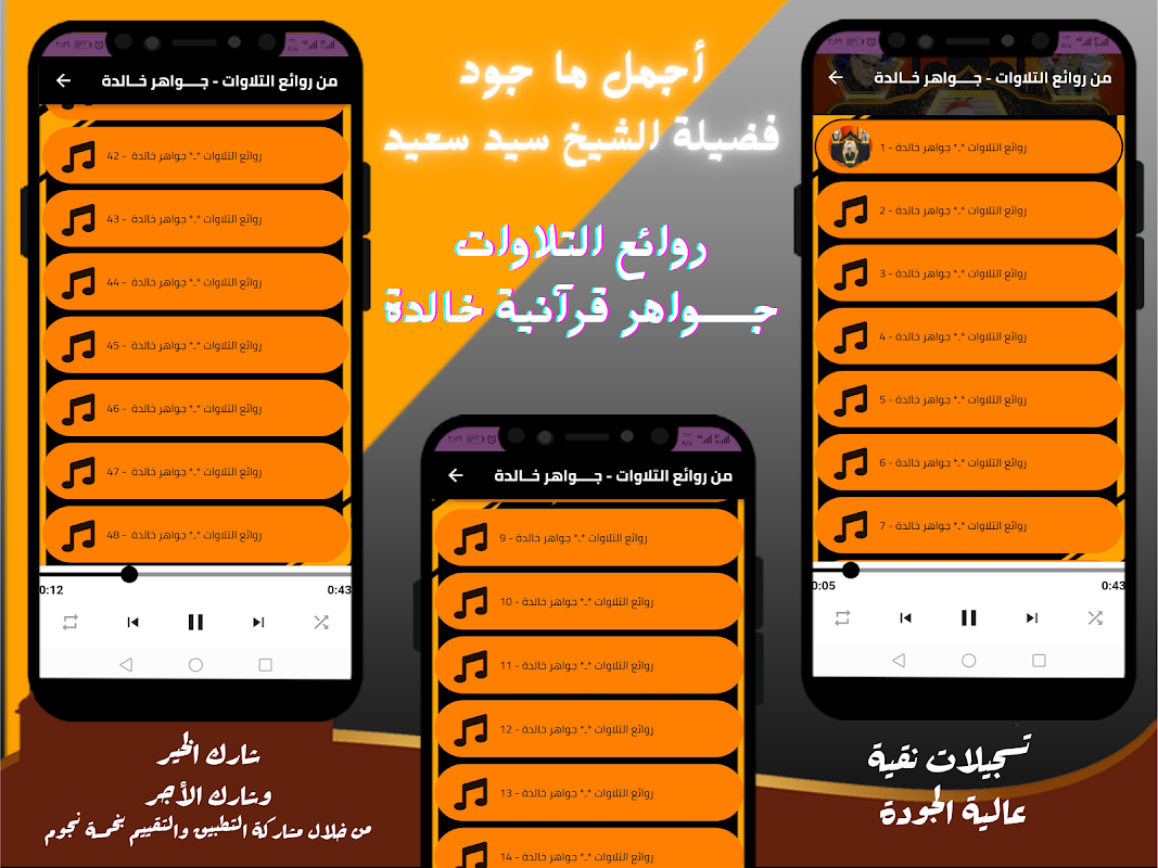 🔻🔺 A aplicação do áudio do Alcorão Sagrado - o Alcorão Sagrado na voz do Sheikh Sayed Saeed se distingue por ser simples e elegante.