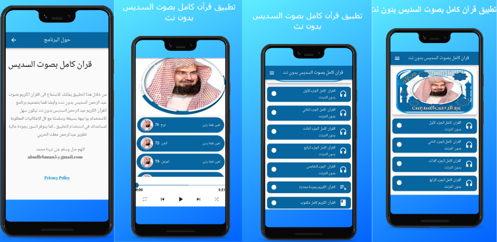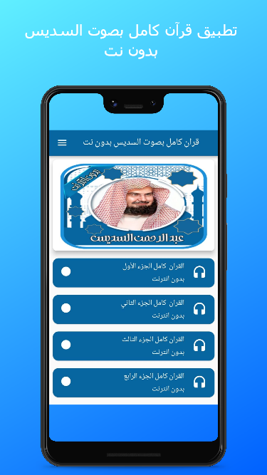 تطبيق القرآن الكريم يوفر صوت عبد الرحمن السديس. يمكنك سماع جميع سور القرآن الكريم من خلال هاتفك المحمول