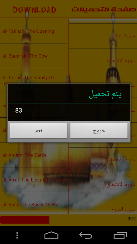 تحميل السور على الجهاز٫للاستماع للتلاوة دون الاتصال بالانترنت