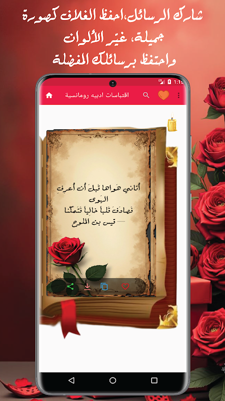 Experimente a atmosfera de livros românticos com um design elegante que imita livros reais. Cada citação é exibida em uma página elegante e folheável, como se você estivesse lendo seu próprio romance, com um belo design e uma atmosfera acolhedora e romântica. A melhor parte é que você pode baixar e compartilhar a imagem de uma forma romântica.