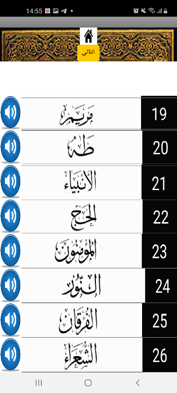 يحتوي التطبيق على فهرس لثلاثون جزء من القران الكريم لتسهل على المستخدم الذهاب للسورة اللتي يرغب في مراجعتها