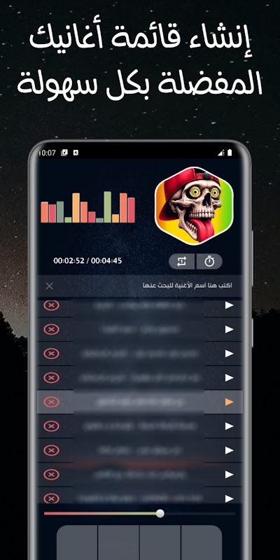 Aplicação de músicas antigas e novas de festivais populares egípcios em alta qualidade e sem Internet