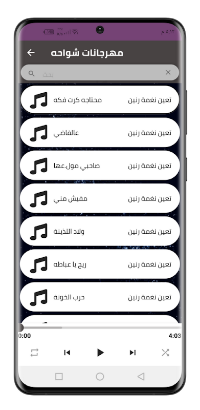 Lista de músicas e festivais no aplicativo Shawaha Festivals 2023 sem net: