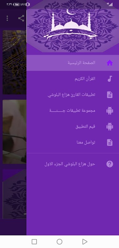 ويمكنك تحميل باقي السور و المقسمة على تطبيقين من خلال خيار تطبيقات القارئ هزاع البلوشي الموجودة داخل التطبيق