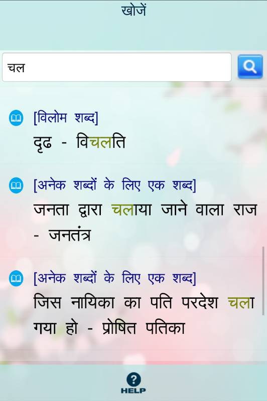 Este aplicativo fornece sinônimos, antônimos e palavras de substituição de uma palavra em hindi.