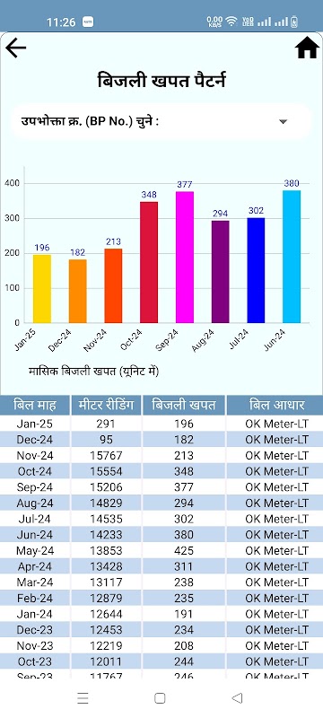 5. बिजली बिल पैटर्न - 24 minutos atrás पैटर्न देखने की सुविधा