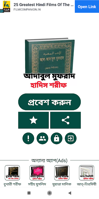 O livro Adabul Mufrad é basicamente uma coleção de hadith relacionados à etiqueta. Adabul Mufrad é um livro escrito na Sunnah do Profeta (que a paz esteja com ele). Este livro discute em detalhes a etiqueta e as maneiras da educação. O aplicativo islâmico Al Adabul Mufrat é um livro hadith bem conhecido. No livro Al-Adabul Mufrad, 1339 hadiths foram narrados sob 845 títulos. Não existe outra coleção tão grande de hadith sobre etiqueta e moralidade. O livro Adabul Mufrad não é como os livros de Sahih Bukhari, Sahih Muslim, Sunan Ibn Majah, Sunan Tirmidhi, Sunan Nasai, Sunan Abu Dawood. É basicamente uma coleção de hadith relacionados à etiqueta. A Sunnah do Profeta (que a paz esteja com ele): Este aplicativo contém as coisas necessárias em nossa vida diária. Adabul Mufrad Hadith Sharif ~ Adabul Mufrad Hadis Sorif O livro é totalmente gratuito. Você pode baixar o livro e lê-lo offline. Al-Adabul Mufrad Bangla Hadith do Imam Bukhari (R) 500+ Sunnah do Profeta (SAW).