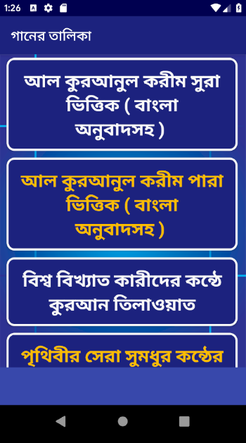 - Baseado em Al-Qur'anul Kareem Sura (com tradução em bengali)
