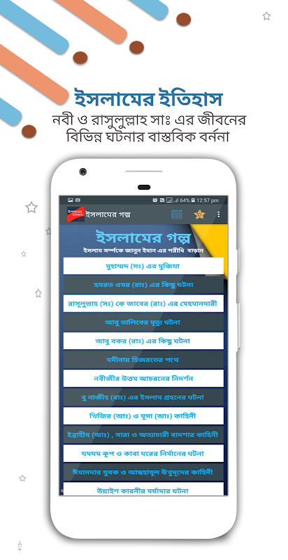 আসুন পড়ি নবীদের জীবনের কাহিনি থেকে নেওয়া, সাহাবীদের গল্প, হাদিসের গল্প, শিক্ষামূলক গল্প, পীর-আওলিয়াদের livro কাহিনী golpo বাংলা ইসলামিক বই থেকে সেরা সব ইসলামিক গল্পসমূহ নিয়ে আমাদের এই অ্যাপ টিকে সাজানো হয়েছে. নবীদের জীবনী থেকে আমরা আমাদের অনেক শিখার আছে. তাদের নিয়ে রয়েছে নানান শিক্ষামূলক গল্প. নবীর জীবনী তথা মহানবীর অনেক কাহিনী আমরা আমাদের এই বাংলা ইসলামিক aplicativos এ তুলে ধরেছি. প্রতিটি ঘটনার শেষে পাবেন নানান শিক্ষা যা আপনার কাজে দিবে. বাংলা গল্প livre (golpo em bengali livre) এই অ্যাপসে ইসলামি বই হিসাবে কাজ করবে বলে আমারা মনে করি. আপনারা অবসরে নানান বাংলা গল্প বই পড়ে থাকেন, সব চেয়ে ভাল আমি মনেকরি মহানবী হযরত মোহাম্মদ (সাঃ) জীবনী কারণ যার জীবনে রাসূলুল্লাহ সাথে মিলে যাবে সে অতি ভাগ্যবান এইসব হাদিসের গল্প আপনার জীবনের আমূল পরিবর্তন করে দিতে পারে. নবিদের কাহিনি গুলো আপনার মনোযোগ এমন ভাবে কেড়ে নিবে যে বুঝতেই পারবেন না কখন সময় চলে যাবে. আমাদের ইসলামিক উক্তি / ইসলামিক বানী অ্যাপটীও আপনার মোবাইল ফোন রেখে দিতে পারেন. মহানবীর বানি আমাদের নানান বিষয়ে জানতে সহায়তা করবে. চলুন দেখে নেই কি কি গল্প (golpo bangla) ইসলামিক গল্প আছে আমাদের এই ইস্লামিক গল্প অ্যাপসে -