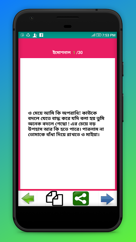 অনেক বেছে বেছে ভালো sms এর collection নিয়ে আমাদের এই বাংলা এসএমএস ঝুড়ি Apps ।আপনাদের feedback আমাদের জানান প্রয়োজনে আমরা app update করব। ভুল হলে দয়া করে বাজে comments করবেন না।আমাদের জানান আমরা ভুল সংশোধন করে নেব।ভালো থাকবেন সবাই।