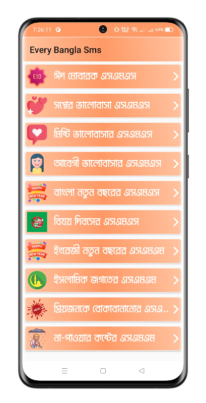 Os recursos são fornecidos neste aplicativo Every Bangla Sms