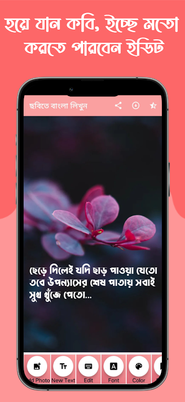 Você pode selecionar uma foto da galeria e editar a imagem. Escreva em bengali com sua fonte favorita. Todos nós temos emoções em nossos corações e adoramos escrevê-las em fotos e postar histórias em vários sites sociais e compartilhá-las com amigos.