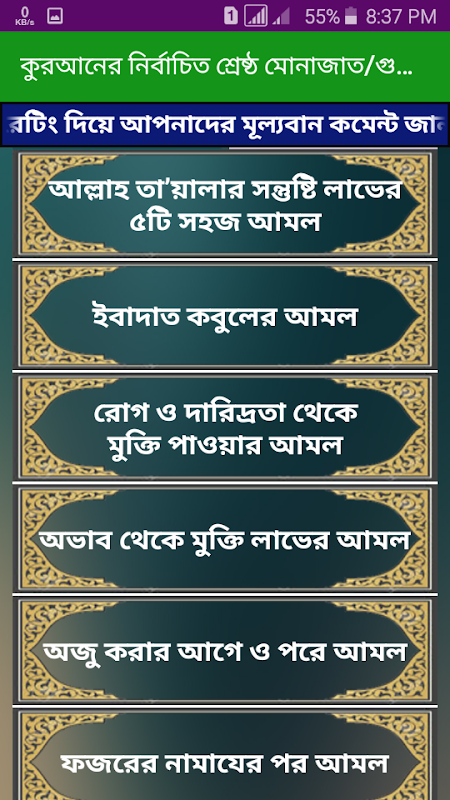 কুরআনের নির্বাচিত শ্রেষ্ঠ মোনাজাত ও গুনাহ মাফের দোয়া নিয়ে অ্যাপটি তৈরি করা হয়েছে
