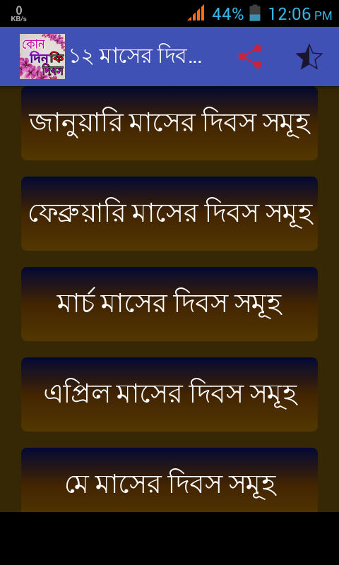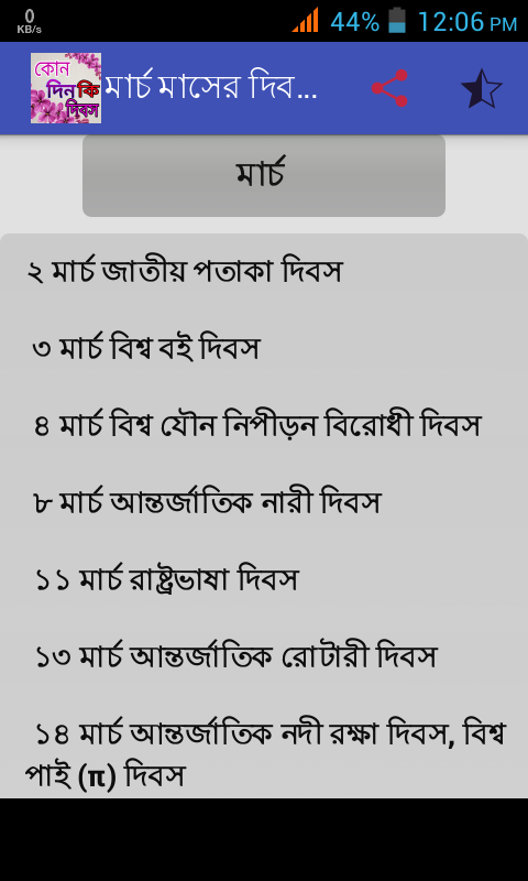 বছরের কোনদিন কোন দিবস তার বিস্তারিত তথ্য পাবেন অ্যাপটিতে .1২ মাসের দিবসের সমাহার.