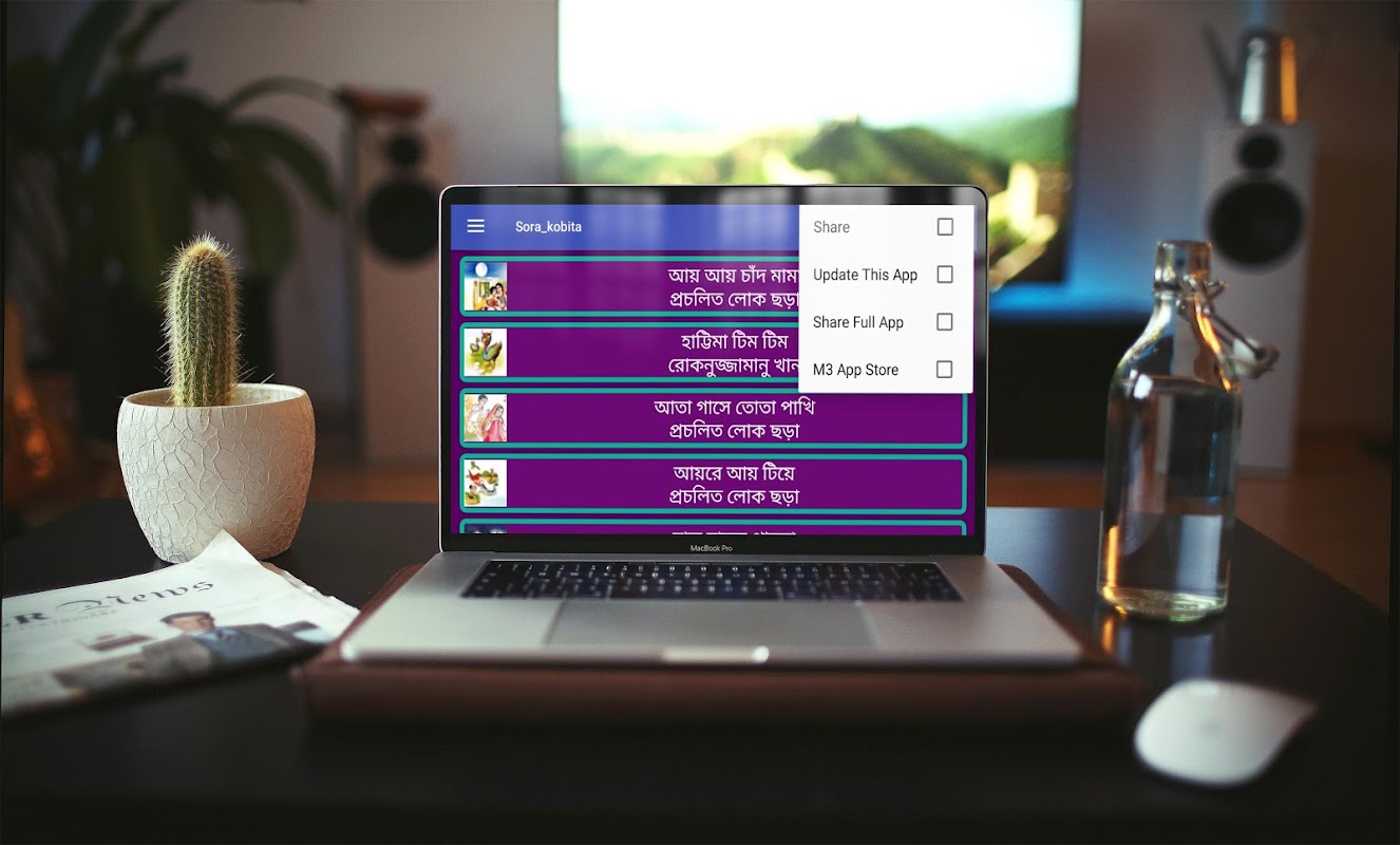 ছবি ও অডিও সহ (mp3)ছোটদের বাংলা ছড়া গান ও কবিতা (chotoder mojar chora kobita) নিয়ে ডেভেলপার টীম M3 App Store এ অ্যাপটি প্রকাশ করেছে। আপনার সোনামণির জন্য এটি আমাদের পক্ষ থেকে একটি ছোট উপহার।