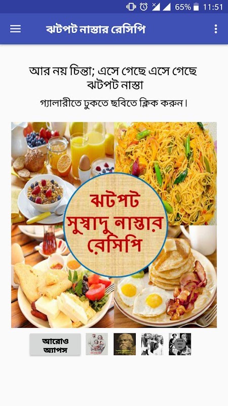 ঝটপট নাস্তার রেসিপি অ্যাপটি মুলত সে সকল মানুষদের জন্য যারা ভিন্ন ধরনের খাবার খেতে পছন্দ করেন সবসময়।