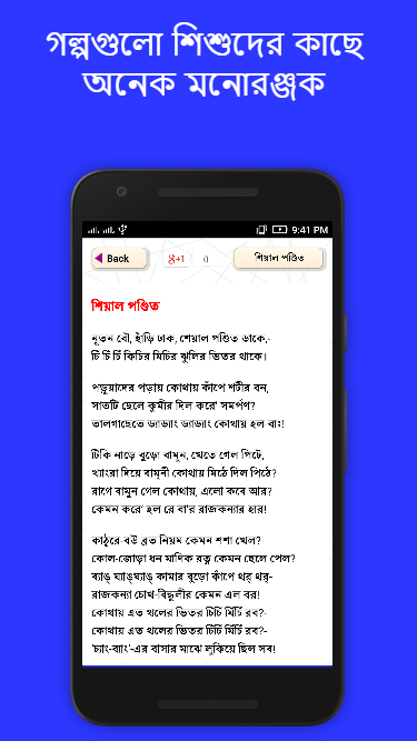 As histórias foram coletadas em diferentes campos. Existem aplicativos Bangla Poesia e Short Story projetados de uma forma muito bonita, que você vai gostar muito. As histórias serão divertidas para as crianças por causa da bela forma de escrever.