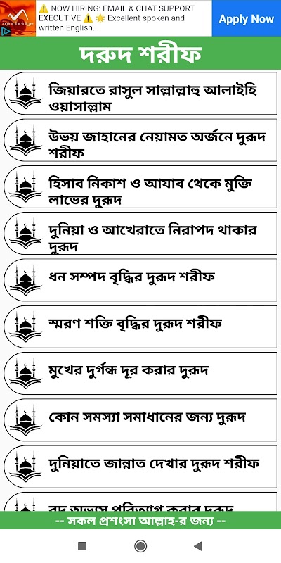 É muito importante recitar Darud Sharif para que a oração seja aceita, então todos devemos recitar mais e mais Durud, então teremos a intercessão de nosso amado Profeta na Vida Futura. Todas as bênçãos e bênçãos foram dadas em nosso aplicativo. E como agir e virtudes foram discutidas.