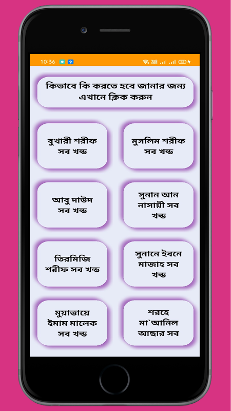 বুখারী শরীফ,মুসলিম শরীফ,আবু দাউদ,তিরমিজি শরীফ,ইবনে মাজাহ,সুনান আন নাসায়ী,মুয়াত্তা ইমাম মালেক,মুয়াত্তা ইমাম মুহাম্মাদ, তাহাবী শরীফ ( শরহে মা আনিল আছার ) সহ দাওরা হাদিসের সকল কিতাব সকল খন্ড একসাথে এক এপ এ পেয়ে যাবেন ইনশাল্ললাহ ।