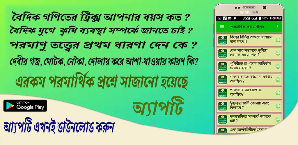 এ ধরনের পরমার্থিক প্রশ্ন ও উত্তর দিয়ে অ্যাপটিকে সাজিয়ে তোলা হয়েছে।যা বৈদিক যুগের নানা অজানা বিষয় জানতে সাহায্য করবে।