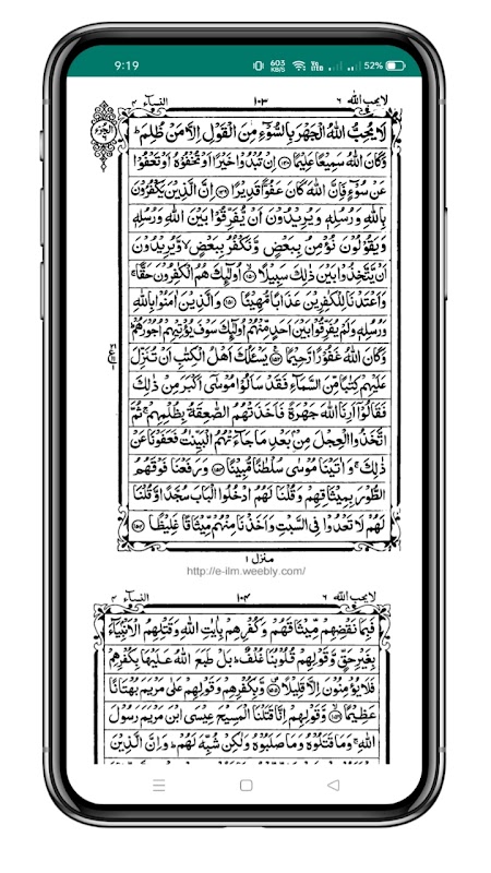 Você pode ampliar as páginas do Alcorão arrastando-as com dois dedos.