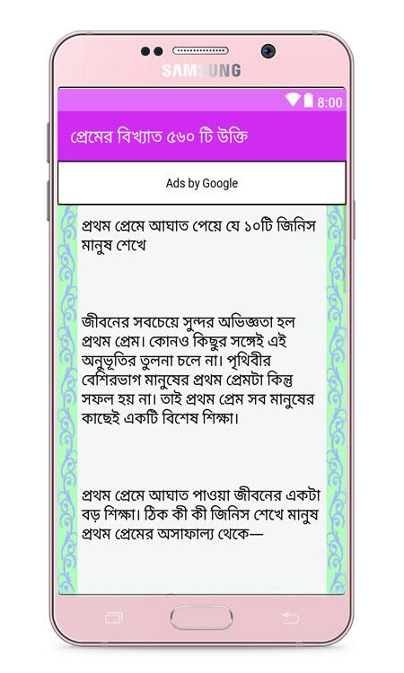 অ্যাপটিতে ৫৬০ টি ভালবাসার উক্তি দেওয়া হয়েছে আশাকরি ভাল লাগবে ।