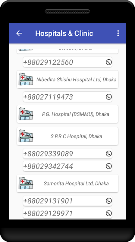 * Emergency contacts with hospitals and clinics.