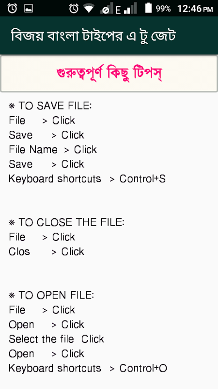 বন্ধুগন আপনারা যাহারা কম্পিউটার অফিস এর কাজ শিখছেন বা শেখার ইচ্ছা আছে তাহাদের জন্য আমাদের এ্যাপটি তৈরী করা হয়েছে হয়েছে হয়েছে. আপনারা জানেন যে বাংলা টাইপ করার একমাত্র জনপ্রিয় বহুল ব্যবহৃত সফটওয়্যার হচ্চে বিজয় বা বিজয় -5২. এবং অভ্র এর ইউনি বিজয়।