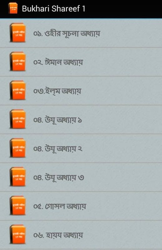 Bangla Hadith Shahi Al Bukhari Sharif Part one full.Bukhari Sharif Bangla Part one full. This is not a pdf file.no additional software needed to read.once downloaded it can be read offline. Bangla free Islamic book. Bangla Hadis .
