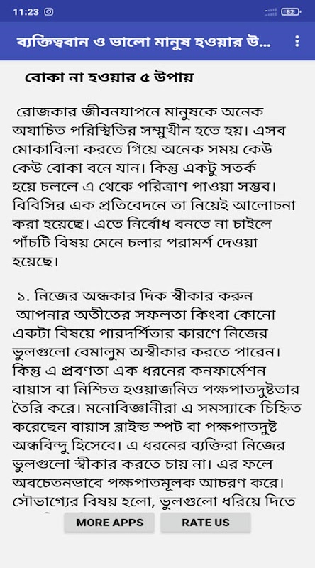 তাই এই এপস এর মাধ্যমে আমারা আপনাদের সাথে আলোচনা করার চেষ্টা করেছি কি ভাবে আপনি একজন ব্যক্তিত্ববান ও ও ভালো মানুষ হয়ে ওঠতে পারেন। আশা করি এপসটি আপনাদের উপকারে আসবে।