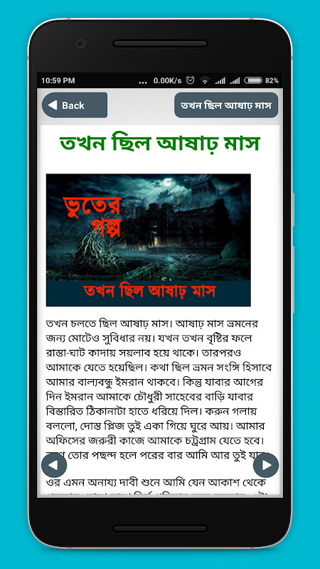 ভয়ঙ্কর সব ভূতের গল্প bhooter golpo bangla দিয়ে বানানো হয়েছে আমাদের এই মজার ফ্রি বাংলা অ্যাপ। ডাউনলোড করুন, পড়ুন এবং ভূতের ভয় ও মজা পান। দূর্বল চিত্তের বা হার্ট এ সমস্যা রয়েছে এমন লোক অ্যাপটি থেকে দুরে থাকুন। কোন রকম দূর্ঘটনার জন্য কর্তৃপক্ষ দায়ী নয়। আশা করি এই bhuter golpo অ্যাপটি যারা ভূতের ভয় পেতে ভালবাসেন অর্থাৎ ভূতের গল্প পাগল লোকদের ভাল লাগবে। সবাইকে ধন্যবাদ।