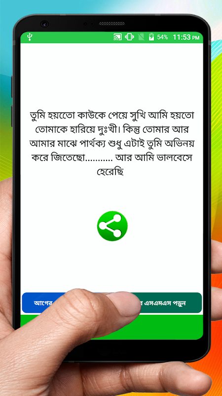 প্রিয় বন্ধুরা , কষ্ট করে আর এসএমএস লিখতে বা খুঁজতে হবে না । এখানেই পাবেন সেরা বাছাইকৃত এসএমএস গুলো । এখন থেকে এসএমএস করবেন মন খুলে প্রিয় মানুষের কাছে ম্যাসেজে , মেসেন্জারে , ফেসবুকে , হোয়াটসএপে , ইমোতে , ইমেইলে এছাড়াও আরো অনেক । এখন ই ডাউনলোড করুন আর শুরু করুন এসএমএস পাঠানো । সরাসরি শেয়ার করার সুবিধা আছে । এর জন্য রয়েছে শেয়ার বাটন । কষ্ট করে আর কপি পেস্ট করতে হবে না । আশা করি আপনি এস এম এস পড়ে অনেক আনন্দ পাবেন ।