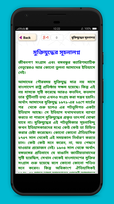 বাংলাদেশের ইতিহাসের সবচেয়ে কালক্ষয়ী হচ্ছে মুক্তিযুদ্ধ’ ১৯৭১। আমাদের দেশের ইতিহাসে যা ভোলার নয়। তিরিশ লক্ষ শহীদের প্রান ত্যাগের বিনিময়ে পেয়েছি আমরা আমাদের এই বিজয়। প্রতিটা বছর আমরা নানা ভাবে উদযাপন করি বিভিন্ন দিবস গুলো যেমন বিজয় দিবস, স্বাধীনতা দিবস, এমনকি ১৯৫২ এর ভাষা আন্দোলন পেয়েছে বিশ্বব্যাপী আন্তর্জাতিক মাতৃভাষা দিবস এর স্বীকৃতি। ১৯৪৭ এর দেশ বিভাগের পর জন্ম নেয় দুই দেশ পশ্চিম ও পূর্ব পাকিস্তান, পশ্চিম পাকিরা আমাদের উপর চালায় নানা নির্যাতন এমন কি কেড়ে নিতে চায় মুখের ভাষাটুকু। তাই শুরু হয় দেশ রক্ষার লড়াই।তারই পরিপ্রেক্ষিতে প্রথমে ভাষা আন্দোলন ও পরে সমগ্র জাতি নেমে পড়ে যুদ্ধে, দেশ জয়ের যুদ্ধে। আমরা লাভ করি আমাদের বিজয়। আমাদের এই অ্যাপটিতে পাবেন মুক্তিযুদ্ধের ইতিহাস,মুক্তিযুদ্ধের সংক্ষিপ্ত ইতিহাস ,বাংলাদেশের ইতিহাস History BD ,যুদ্ধদলিল ,বাংলাদেশের ৬৪ জেলার ইতিহাস,মুক্তিযুদ্ধের গান ইত্যাদি