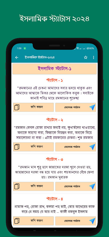 ইসলামিক স্ট্যাটাস-২০২৪ এই অ্যাপ টি সাজানো ছে ইসলামিক স্ট্যাটাস দিয়ে।