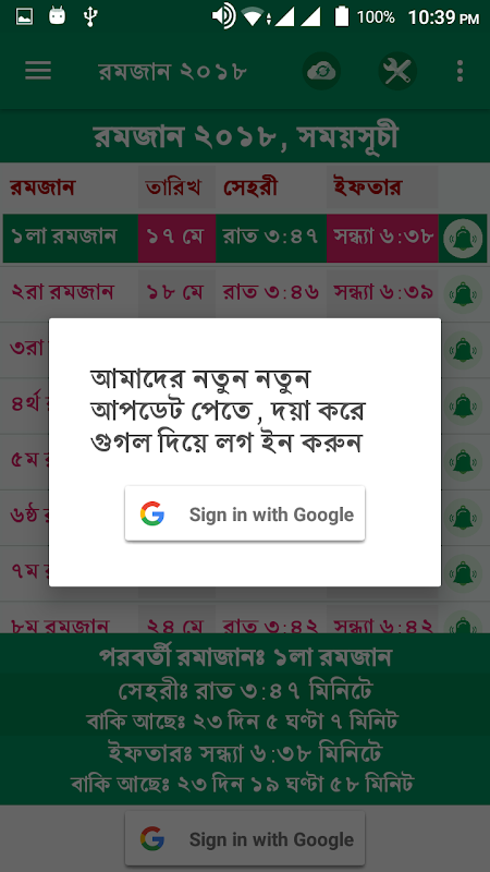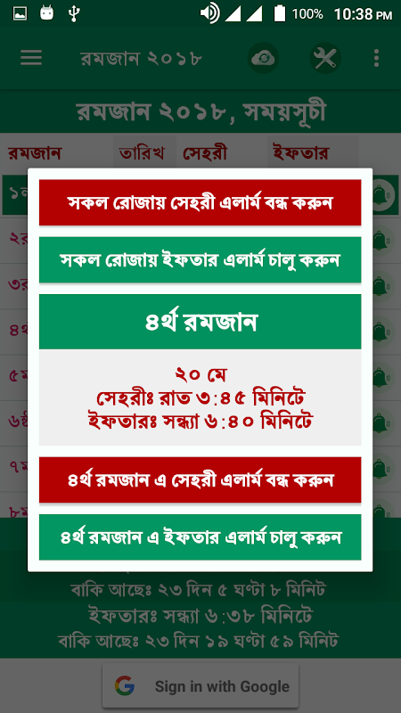 Sobre este রমজান ক্যালেন্ডার ২০১৮ঃ সময়সূচী, সেহরি এলার্ম