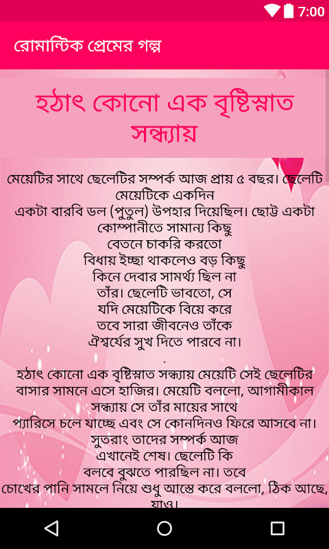 অসাধারণ সব ভালবাসার গল্প দিয়ে সাজানো আমাদের এই অ্যাপস "রোমান্টিক প্রেমের গল্প"