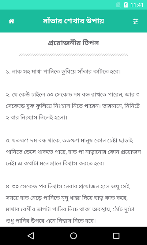 You can find this app using those keywords in Google Play: satar sekhar upay | swimming techniques bangla | swimming tips bangla | learn swimming bangla tips | satar sekhar sohoj upay | satar tips bangla | learn swimming in bangladesh