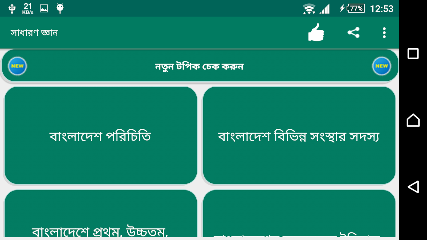 সাধারন জ্ঞান ২০২১ বাংলাদেশ বিষয়াবলী বা General Knowledge Bangla 2021 অ্যাপটিতে যা যা থাকছে তার ক্যাটাগরি নিচে দেয়া হলঃ