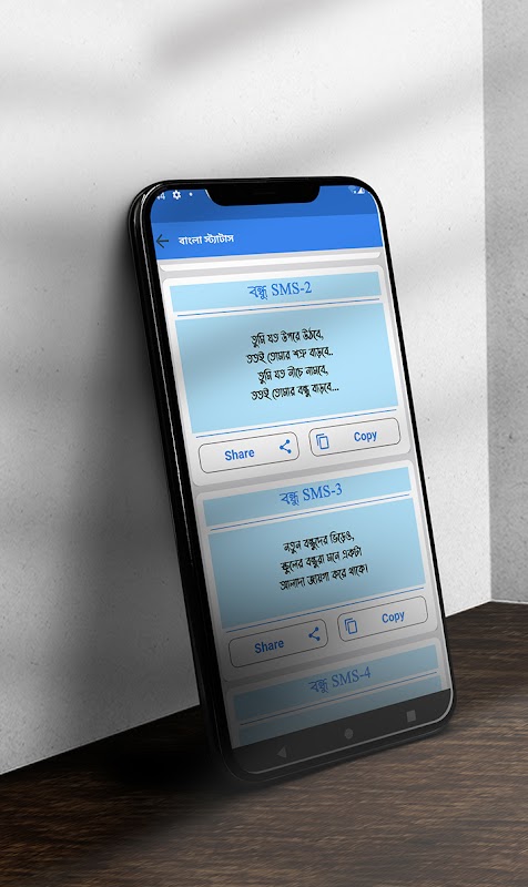 আমাদের এই স্ট্যাটাস ৪৬ টি ভাগে ভাগ করা হয়েছে এবং প্রত্যেকটি ক্যাটাগরিতে ৬০ করে করে স্ট্যাটাস আছে।। এই অ্যাপটিতে সবগুলো স্ট্যাটাস ক্যাপশন হিসাবেও হিসাবেও ব্যাবহার করতে পাবেন। এখানে প্রায় ২৮০০ sms দেওয়া আছে । আপনাকে আর বিভিন্ন ধরনের SMS App নামাতে হবেনা, একটি অ্যাপেই সকল সমস্যার সমাধান।।