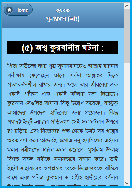 Quatro Alam Badsha profeta Salomão (que a paz esteja com ele desde a sua infância :) chilela conhecimento especial. Muitas das amostras mostrou que ele ainda era uma criança. Onze crianças foram reconhecidos como a melhor porque o Rei, e mais tarde ele recebeu o título de melhor rei do mundo. Sábio, sábio, e em particular a decisão Sulaiman (A biografia :) deste aplicativo foi desenvolvido. Ele é associado com cada um dos seus eventos, como a infância, Haruta e história marutera, dada tohamat, o sacrifício de cavalo, a construção do templo e mukbaddasa descreveu sua morte como um evento maravilhoso. Ele podia entender a linguagem de todas as criaturas, até o vento e não podia controlar. Há muitas coisas a aprender com sua biografia, bem como informações educativas e. Ele considera todos os sentidos para conhecer e rumores, em vez de os dados reais para este aplicativo foi criado. Este aplicativo é como ter uma coleção.