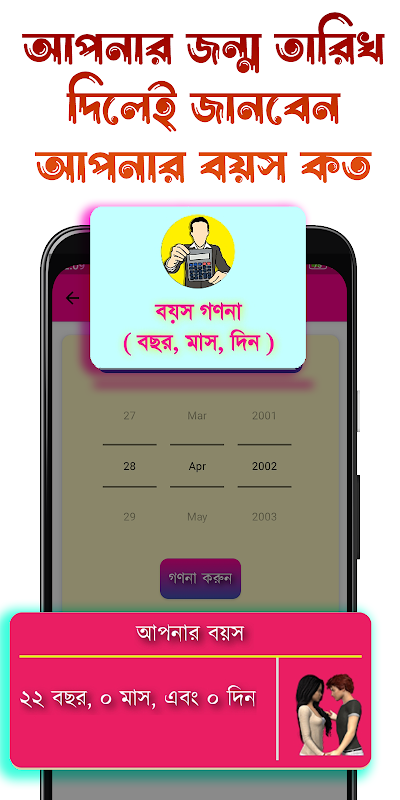 Calcule perfeitamente sua idade em anos, meses e dias, com resultados precisos adaptados à sua data de nascimento exata. Esteja você comemorando marcos ou planejando o futuro, nosso aplicativo garante que você nunca perca nada.
