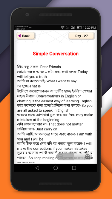 This app help Bengali, who want to improve English Conversation. This apps helps you Bangla to English Speaking who want to speak fluent English. Here you find a section “Daily sentence”. And herehas daily conversations. This apps helps You Learn English Speaking using an easy and simple English Speaking method.