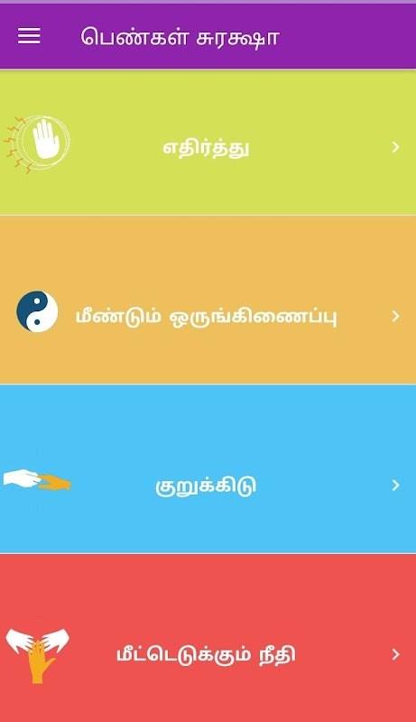 மேலும் இந்த ஆப், பெண்கள் வன்முறை சம்மந்தமான சட்டம் பற்றியும், வன்முறை மிகையாகாமல் தடுக்கவும், சமூகத்தை தழுவிய சீரமைப்பு நீதி போன்றவற்றை விளக்குகிறது. வன்முறை பாதிப்பிலிருந்து மீண்டு ஒருங்கிணைந்து வாழ வழிகளையும், அவசர கால தொலைபேசி எங்களையும் இந்த ஆப்பிலிருந்து பெறலாம்.