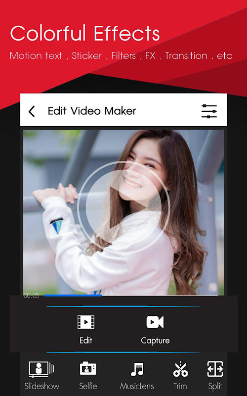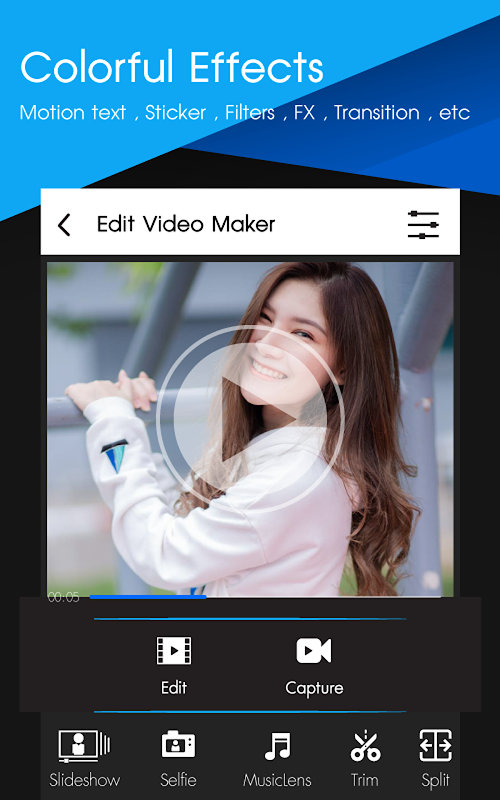 Um editor de vídeo completo para Android, que suporta imagens, vídeo e imagens, texto, áudio e reúne vídeo Faça um show