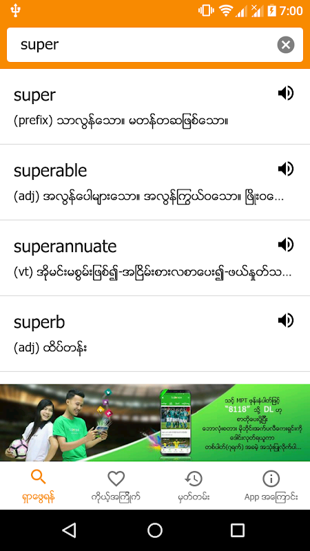 As pessoas de Mianmar que usam telefones celulares poderão encontrar os significados das palavras em inglês-mianmar que desejam encontrar onde quer que estejam.